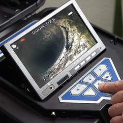 The VIS350 Camera System has a small 1.5" Color Pan & Rotate Camera Head with Built-In Sonde and 100ft of Tough Rod all in small, easy to carry case. The detachable LCD monitor has a 7" TFT.
